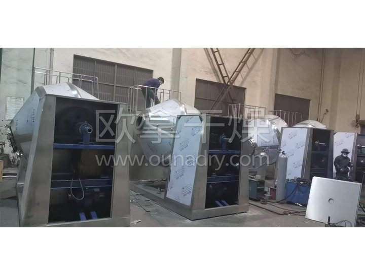 ◎在動力驅動下,罐體作緩慢旋轉,罐內物料不斷地混合,從而達到強化干燥的目的。