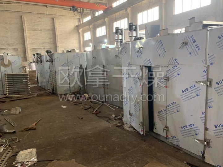 大部分熱風在箱內循環,熱效率高,節約能源。利用強制通風作用,箱內設有可調式分風板,物料干燥均勻,熱源可采用蒸汽、熱水、電、遠紅外,選擇廣泛。整機噪音小,運轉平衡。溫度自控,安裝維修方便。適用范圍廣,可干燥各種物料,是通用干燥設備。